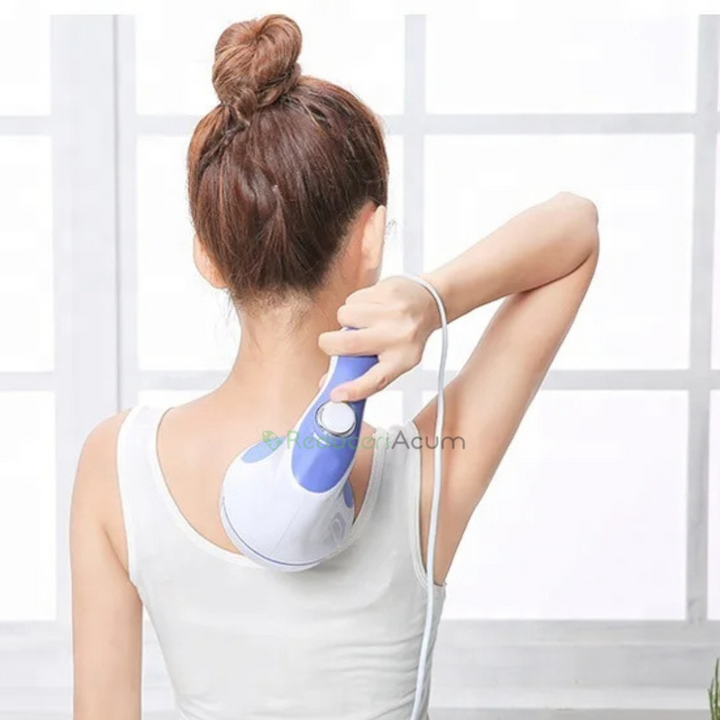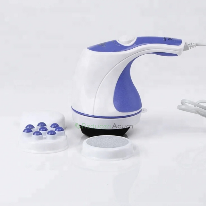 Dispune de peste 2500 de rotatii pe minut si 4 capete interschimbabile. Masajul cu ax descentrat actioneaza in profunzime asupra stratului de grasime, eliminand eficient si rapid celulita.