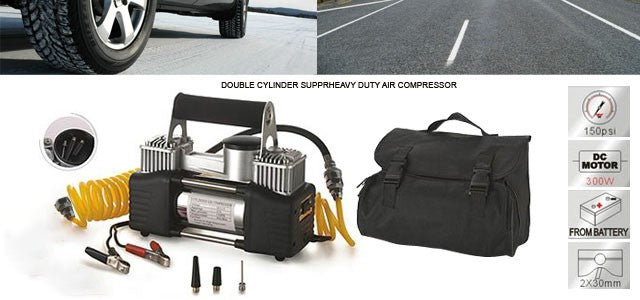 Compresorul de aer portabil este usor de manevrat, are o putere de 7 bari, acesta poate pompa aer in anvelopele auto sau de bicicleta, barcile pneumatice, dar si in mingile pneumatice, colace etc.