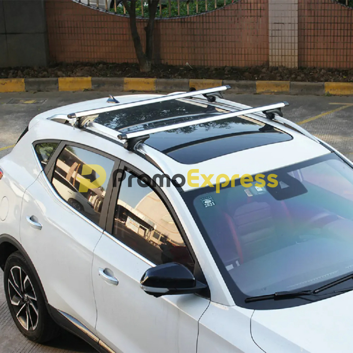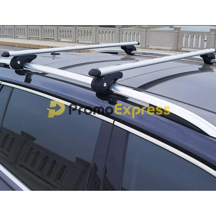 Setul de două bare din aluminiu transversale universale este proiectat pentru a fi montat pe acoperișurile mașinilor, permitând atașarea și transportul diverselor articole, precum cutii de bagaje, biciclete sau echipamente sportive. Aceste bare sunt fabricate din aluminiu rezistent și sunt ajustabile pentru a se potrivi unei game variate de vehicule. Fiind transversale și universale, acestea se potrivesc majorității modelelor de mașini și sunt concepute pentru a rezista la condiții diverse de vreme și uzură.